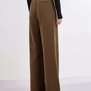 High Waist Coffee Wide Leg Woolen Pants for Women
